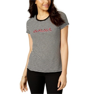 maison Jules Womens Striped Lace Trim Basic T-Shirt