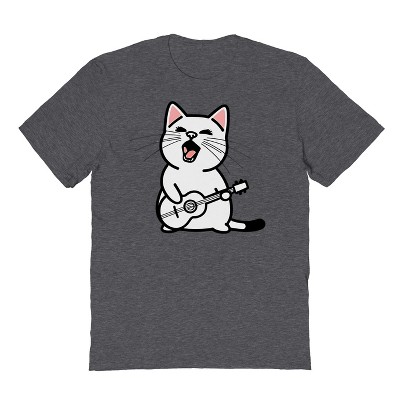 Rerun Island Men's Singing Cat Guitar Short Sleeve Graphic Cotton T-Shirt - Dark Heather M