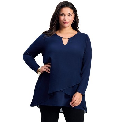 Roaman's Blouson Sleeve Popover Henley Blouse