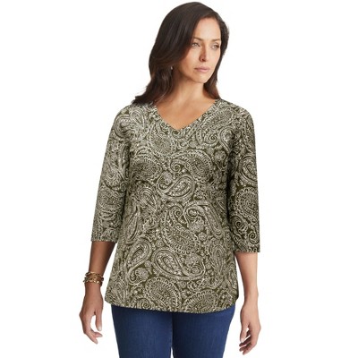 Woman Within Perfect Printed Long-Sleeve Crewneck Tee