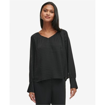 Calvin Klein Womens Textured Peasant Blouse