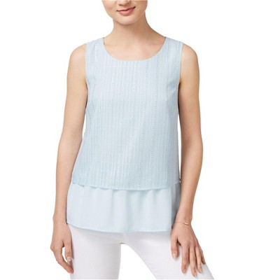 Vince Camuto Womens Snow Leopard Crepe Baby Doll Blouse