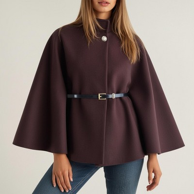 Anna-Kaci Womens Structured Cape Style Top with High Neck and Waist Belt