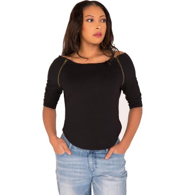 Poetic Justice Curvy Women's Black Short Sleeve Shirt Zipper Shoulders