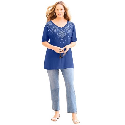 Plus Short Sleeve V Neck Tunic Top - 24seven Comfort Apparel™