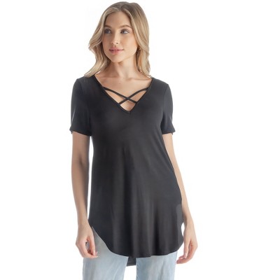 24seven Comfort Apparel Womens Plus Size Elbow Sleeve Tunic