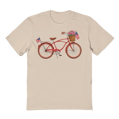Rerun Island Men's American Bicycle Americana 4Th Of July Short Sleeve Graphic Cotton T-Shirt - Sand XXXL
