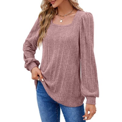 Coolmee Long Sleeve Shirts for Women Tunic Tops Casual Square Neck Fall Tops Lightweight Sweaters