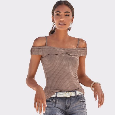 Women's Ribbed Cold Shoulder Top - LASCANA