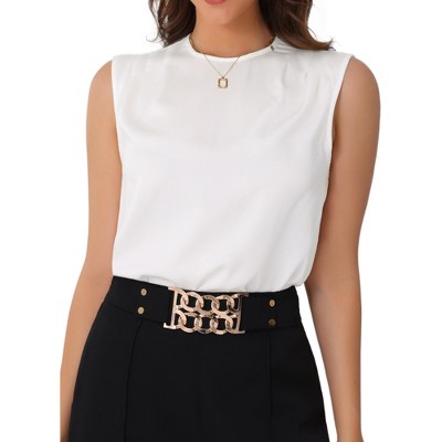 INSPIRE CHIC Women's Sleeveless V Neck Business Casual Satin Blouse Work Shirts