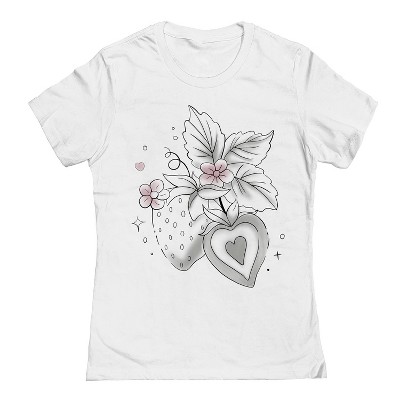 Rerun Island Women's Strawberries Gradient Outline Slice Short Sleeve Graphic Cotton T-Shirt - White L