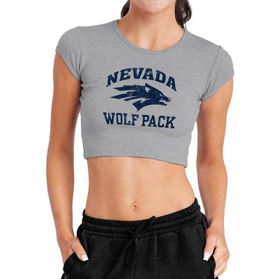 Women's University of Nevada Large Cap Sleeve Baby Rib Crop Top Athletic Heather