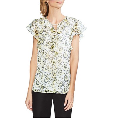 Vince Camuto Womens Flutter Sleeve Floral Pullover Blouse