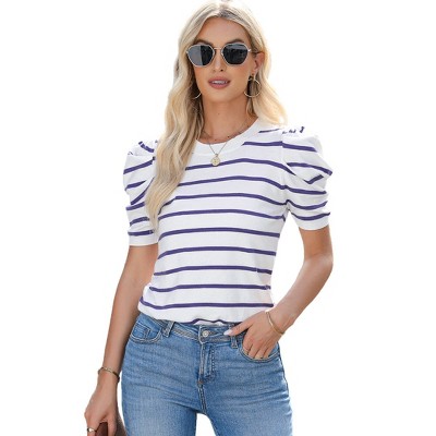 Zilpu Women's Trendy Puff Sleeve Knit Top - Casual Tee Shirt Blouse