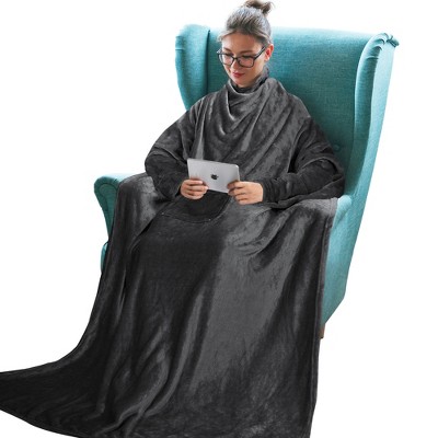 Tirrinia Women Men Fleece Plush Wearable Blanket Snuggle Robe, Super Warm Full Body Throw Reading Wrap TV Blankets, Cozy Gift for Winter