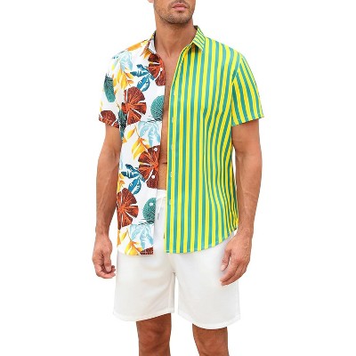 Men's Hawaiian Shirt 2 Pieces Sets Floral Printed Short Sleeve Button Down Shirts and Shorts Summer Beach Outfits