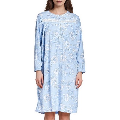 YafeMarte Women’s Long Sleeve Quilted Fleece Button-Front Nightgown with Embroidered Floral Design
