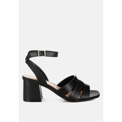 Allegra K Women's Open Round Toe Block Low Heels Ankle Strap Sandals