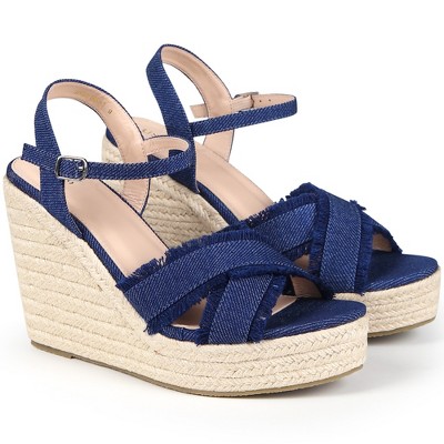 Allegra K Women's Slingback Crisscross Platform Espadrille Wedges Heel Sandals