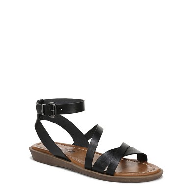 SLOANA Black Strappy Flat Sandals