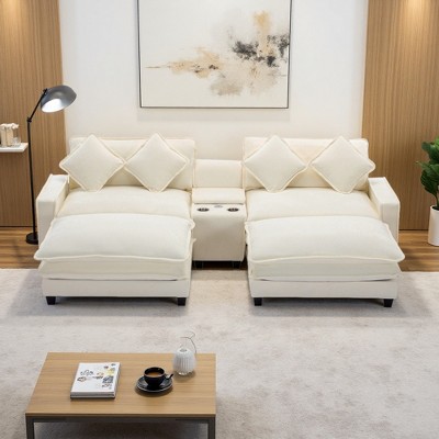 111" Chenille Sectional Sofa with USB, Cup Holders & Console