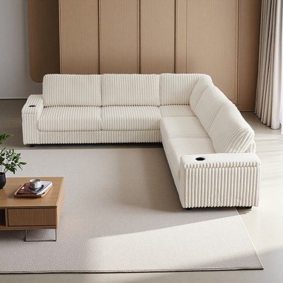 137" Corduroy Modular Sectional Cloud Sofa with Cup Holders