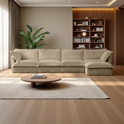 157" Corduroy Modular L-Shaped Sectional Sofa with Ottoman