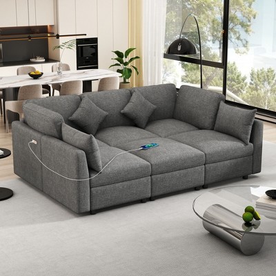 141.5'' U-Shaped Modular Sectional Sofa with Movable Ottoman, Armrest Pockets