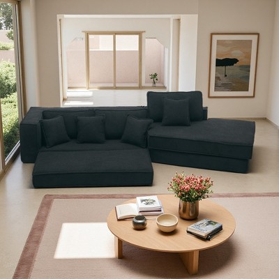 122.1" Velvet L-Shaped Modular Sectional Sofa with Ottoman