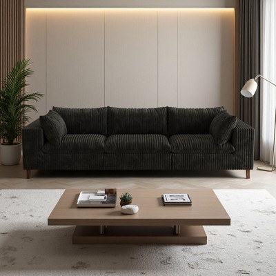 118" Corduroy Cloud Straight Sectional Sofa, Double-Layer Cushions