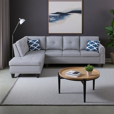 L-Shaped Sectional Sofa with Faux Jewel Tufting & Compact Design