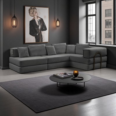 118.2" Oversized Corduroy L-Shaped Sectional Sofa, 6 Pillows, Modular