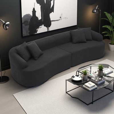 Curved Sectional Sofa in Lamb's Wool Fabric, Compressed Design