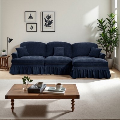 L-Shaped Sectional Sofa with Flared Arms, Skirt & Ottoman