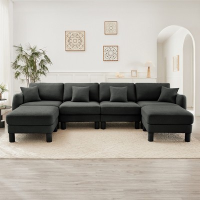 103'' Modular Corduroy L-Shaped Sectional Sofa with Deep Seat, No Assembly Required