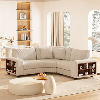 GDFStudio Aly Modular 111.41" Corduroy Fabric and Compressed Foam Sectional Sofa