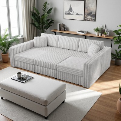 L-Shaped Corduroy Cloud Modular Sectional Sofa with Chaise