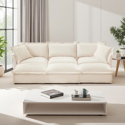 87" Modular Sectional Sofa with Cloud Corduroy, Convertible Bed & Footrests