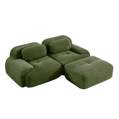 82" Corduroy Modular L-Shaped Sectional Sofa with Ottoman