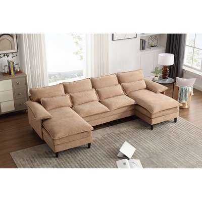 Boost style, space & comfort in your home by picking the perfect sectional sofa for your living room or guest room. Whether you’re looking for a chaise sectional with an armrest on the side or an L-shape sectional or a straight sectional that fits into your small space living room, Target has you covered. Check out Target.com to find a variety of sofas, from a U-shape sectional & sectional couch to a reclining chaise with a headrest that lets you watch TV, read or relax. Choose a room sectional according to your room design, from an L-shaped sectional to a U-shaped sectional to suit your space. Or you can customize your interiors with a modular sofa with a signature design that works for you & your space. Switch out the couch or loveseat for a 4-seat reversible chaise that lets you change the placement of the long chaise cushion & even converts into a twin-size daybed. Built with a sturdy wood frame & an on-trend upholstered design, it perfectly combines strength & style to make a versatile addition to your seating. Just add a couple of throw pillows & a fuzzy blanket to get it ready for dinner or entertaining with friends & family.