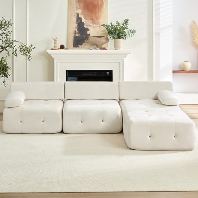 Whisen Modern Oversized Sectional Sofa, L-shaped Luxury Couch Set with Chaise and 2 Pillows