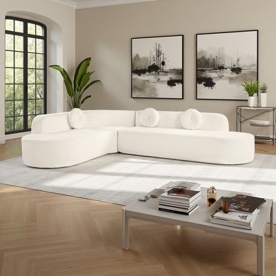 148" U-Shaped Teddy Fabric Sectional Sofa, No Assembly