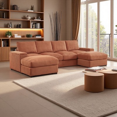 122" Corduroy U-Shaped Sectional Sofa with Deep Seats & Ottomans