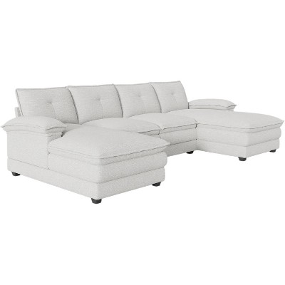123" Chenille U-Shaped Sectional Sofa with Double Chaise & USB
