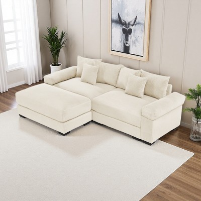 158" Corduroy Cloud U-Shaped Sectional Sofa, Double-Layer Cushions