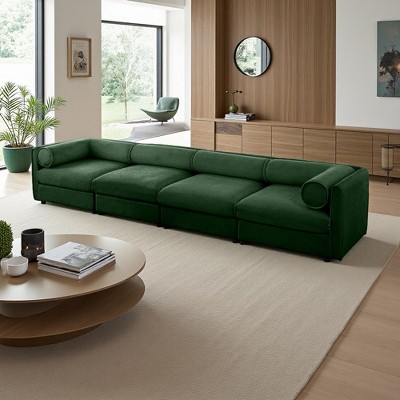 142.5" Chenille Modular Sectional Sofa with Cylindrical Cushions & Storage Seat