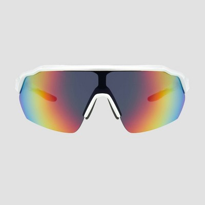Men's Shield Sunglasses with Mirrored Lenses - All In Motion™ White: Scratch-Resistant, UV Protection