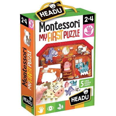 Headu Montessori First Puzzle: The Farm, Ages 2-4, 6-Piece Puzzle with 6 Wooden Animals
