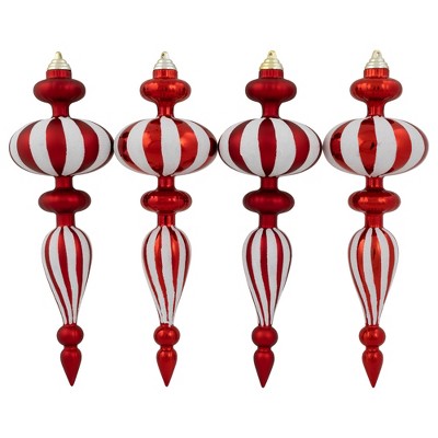 Northlight Shatterproof Commercial Size Finial Christmas Ornaments - 14" - Red and White - Set of 4