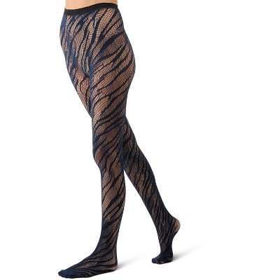 Memoi Women's Lurex Floral Sheer Nylon Tights